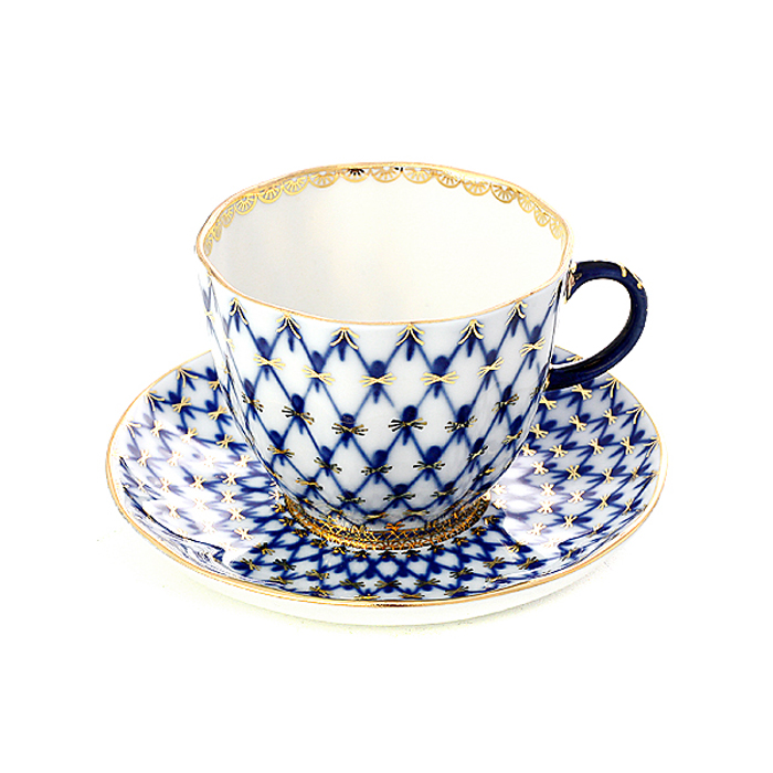Чайные/кофейные парыКофейная пара → Чашка с блюдцем кофейная, рис. "Кобальтовая сетка" 140 мл (форма "Тюльпан")