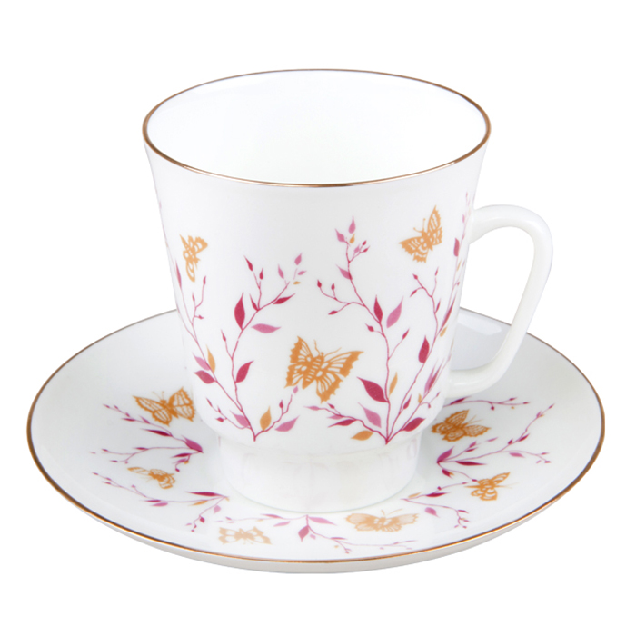Чайные/кофейные парыКофейная пара → Чашка с блюдцем кофейная, рис. "Розовые веточки" 165 мл (форма "Майская")