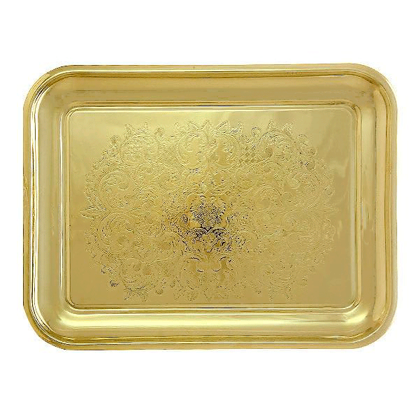 Отдельные предметы сервировкиПодносы, столики → Поднос с гравированным рисунком 30х40 см, латунь