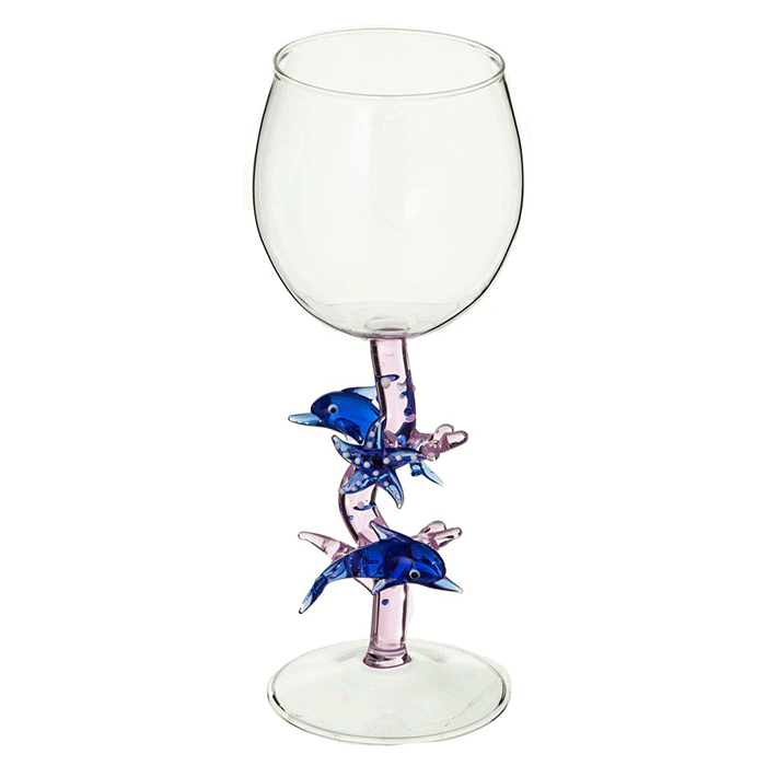 ГлавнаяДля напитковБокалы, стаканыдля вина → Бокал для вина "Дельфины в море" 350мл