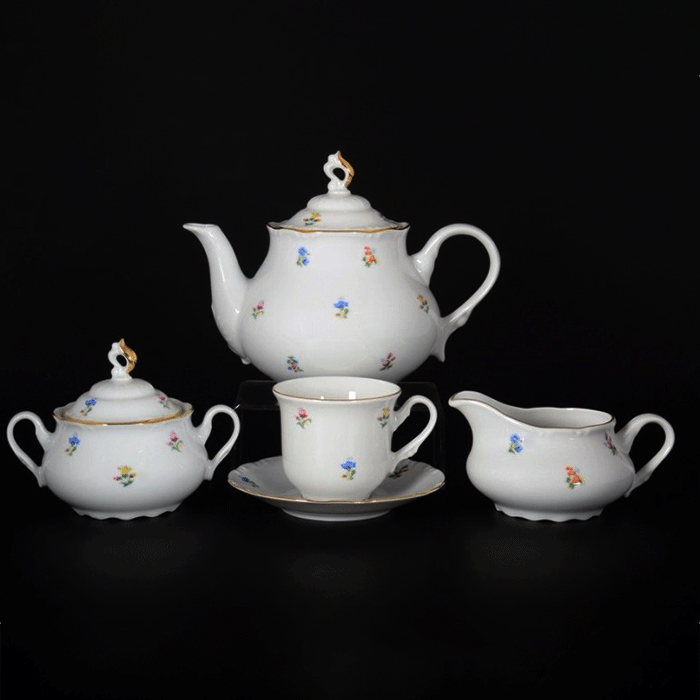 Чайные сервизы → Сервиз чайный "Мелкие цветы, отводка золото" (форма "Констанция")