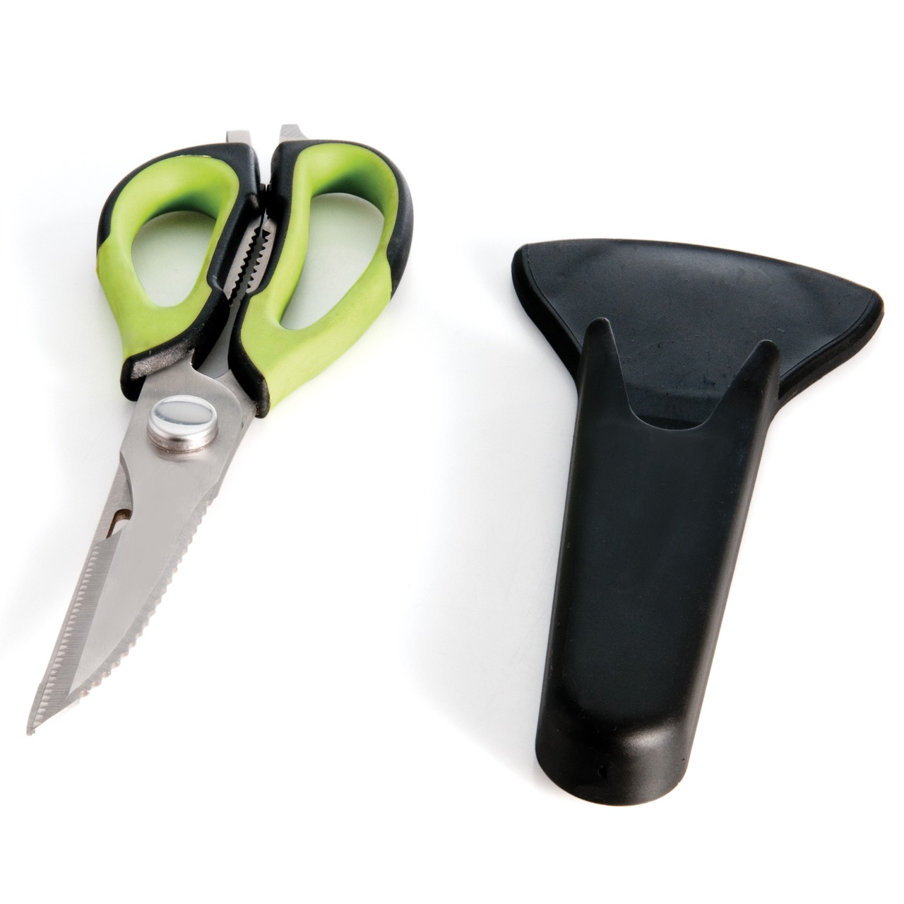 ГлавнаяДля кухниКухонные принадлежностиНожницы → Ножницы кухонные в футляре на магните 23см CooknCo