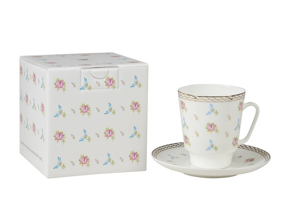Чайные/кофейные парыКофейная пара → Чашка с блюдцем кофейна "Цветочный вальс" 165 мл (форма "Майская")