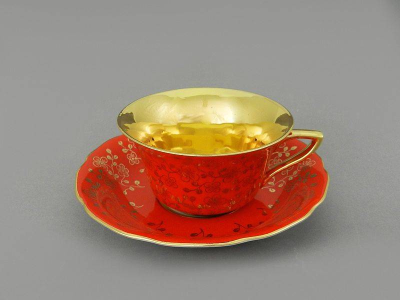 Чайные/кофейные парыЧайная пара,пиала → Чайная пара "Золотые цветы" 150 мл (оранжевый)