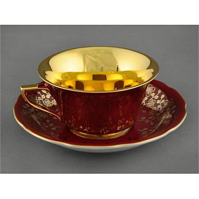 Чайные/кофейные парыЧайная пара,пиала → Чайная пара "Золотые цветы" 150 мл (бордовый)