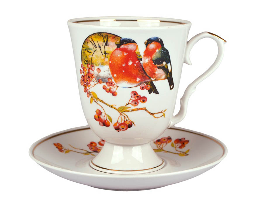Чайные/кофейные парыЧайная пара,пиала → Бокал с блюдцем, рис. "Снегири" 600 мл (форма "Классический")