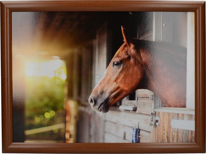 Отдельные предметы сервировкиПодносы, столики → Поднос на подушке "Гнедой жеребец" 44х34 см