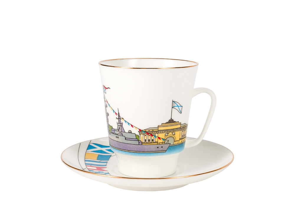 Чайные/кофейные парыКофейная пара → Чашка с блюдцем кофейная, рис. "День ВМФ" 165 мл (форма "Майская")