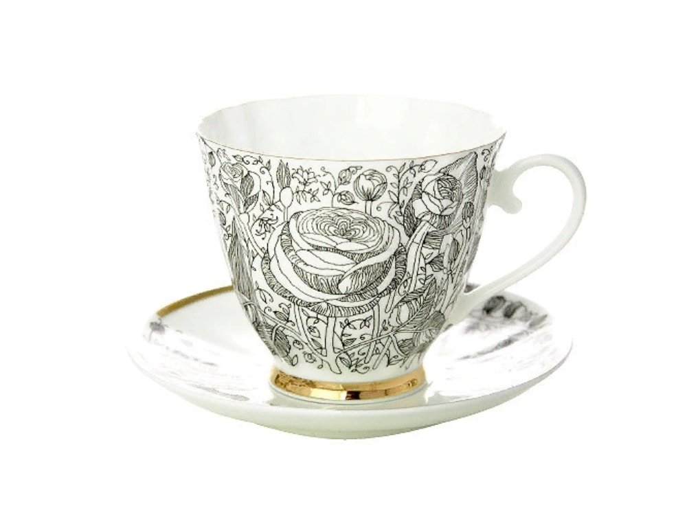 Чайные/кофейные парыКофейная пара → Чашка с блюдцем чайная, рис. "Лето черное" 200 мл (форма "Гвоздика")
